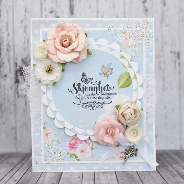 I dag vil jeg vise dere et kort jeg har laget med de nydeligste papirene fra Craft & You. Jeg gjorde min første bestilling fra denne produsenten i sommer, og jeg synes de er så utrolig vakre!